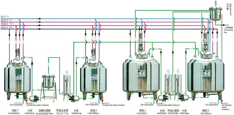 該系列容器適用于制藥行業(yè)的濃/稀配之用,罐體設(shè)有夾層,可加熱、冷卻,內(nèi)表面采用電解鏡面拋光,封頭(錐形)均經(jīng)旋壓加工、符合GMP標準。
